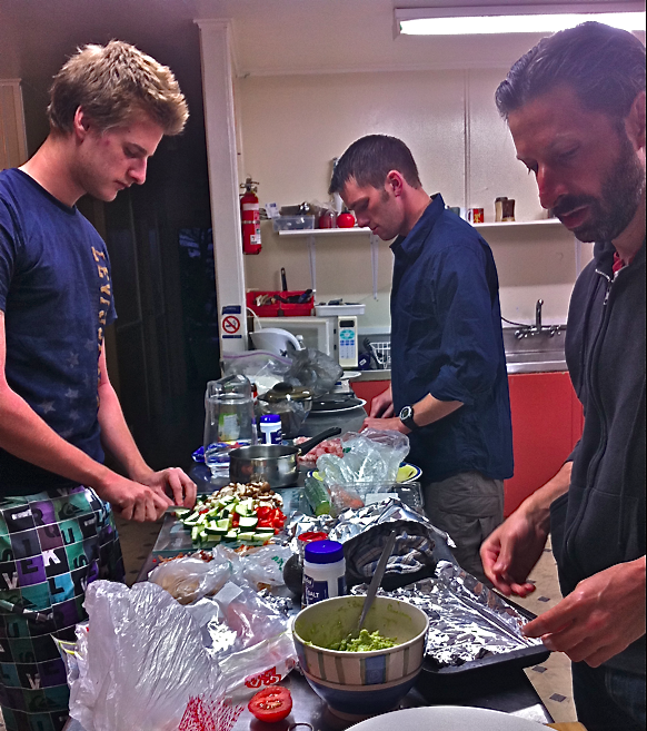 Last week while at Kina Backpackers Hostel on Waiheke Island, Jonas, David, Kimberly, Erica, and myself all decided to cook dinner together.