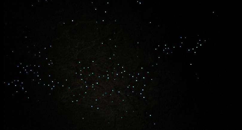 Angus turned off his light as well, and proceeded to tow us through the darkness, down the river, as we sat there in silence and looked at the dozens upon dozens of glowworm colonies in the walls and ceilings above us.