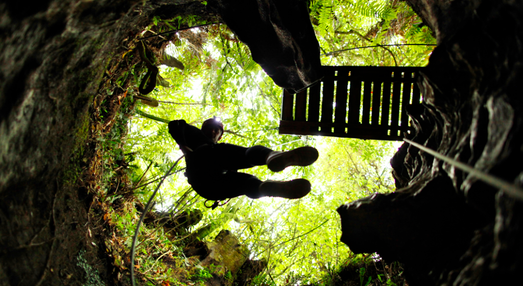 The Black Abyss is the Legendary Blackwater Rafting Co.’s flagship tour in Waitomo: it involves abseiling (rappelling), zip-lining, tubing, caving, and climbing. This is all done underground, in a cave, that is loaded with glowworm colonies.