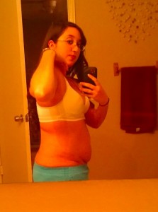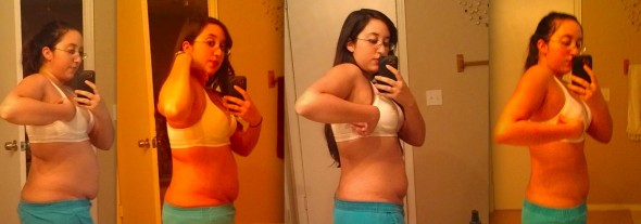 Veronica: I tracked my progress with measurements and pictures once a month. I only step on a scale once a month, when I take my pictures. I do all three at the beginning of the month. I can compare to last month and when I first began my journey.