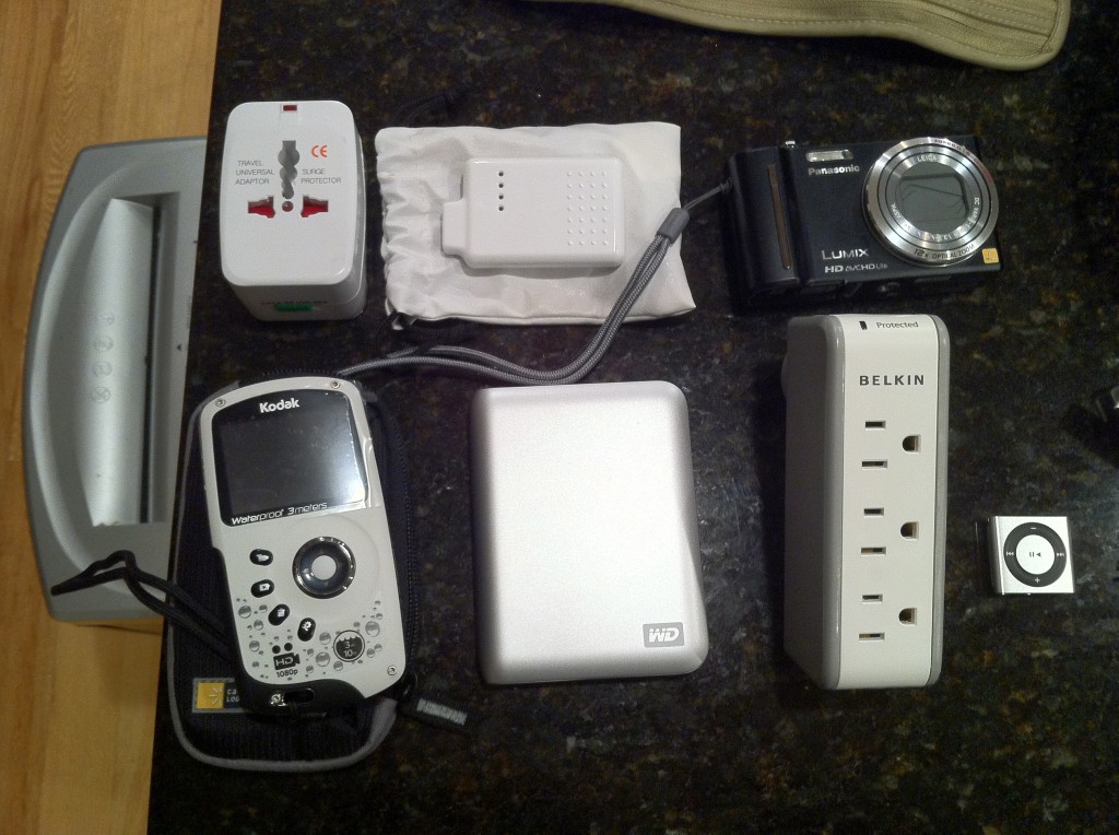 1TB MyPassport External Harddrive – In case my laptop breaks down, gets stolen, etc, I have everything backed up on a MyPassport with Apple TimeMachine.  If I were to lose my laptop, I could buy another one and be up and running within a few hours as long as I have this – which is why I’ll be keeping it in a separate bag. I also have everything backed up on a second hard drive back in Massachusetts (in case I lose both this and my laptop), and I have everything backed up online as well (at Mozy.com, but that may change now that they changed their pricing).