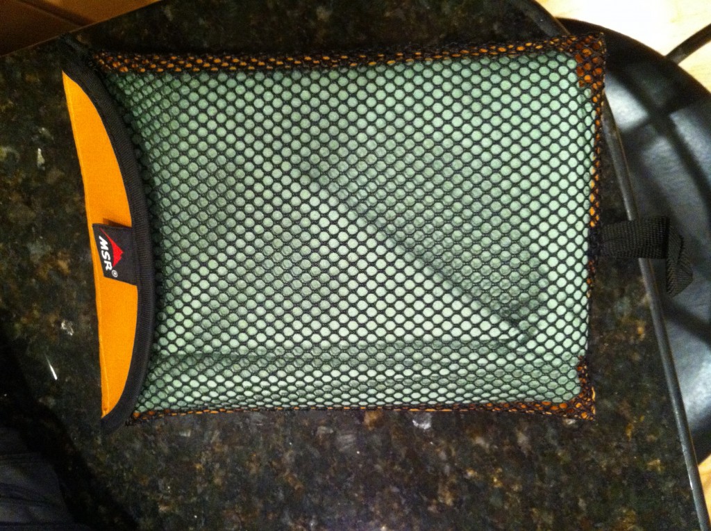 MSR Packtowl Personal Towel (XL) – Odor-resistant, quick to dry, packs tiny, dries big. This will be my shower towel and my beach towel. When I need to go quickly and don’t have time to dry it out, I can at least pack it up, put it back in its pouch, and clip it to the outside of my bag.  I know this picture makes it look huge but this pouch is only about 5″x3″.