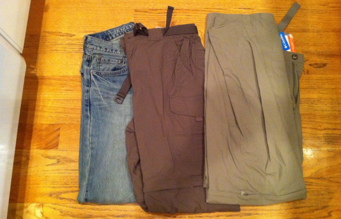 Columbia Silver Ridge 2 Convertible Pants (x2) – Yeah, they’re dorky, but damn they’re comfy, functional, lightweight, quick-drying, and can be worn as pants or shorts. I probably could have gotten by with only one pair, but I got a great deal if I bought two online, and they pack up to be very small.  I think two might come in handy if I decided to ditch the jeans.