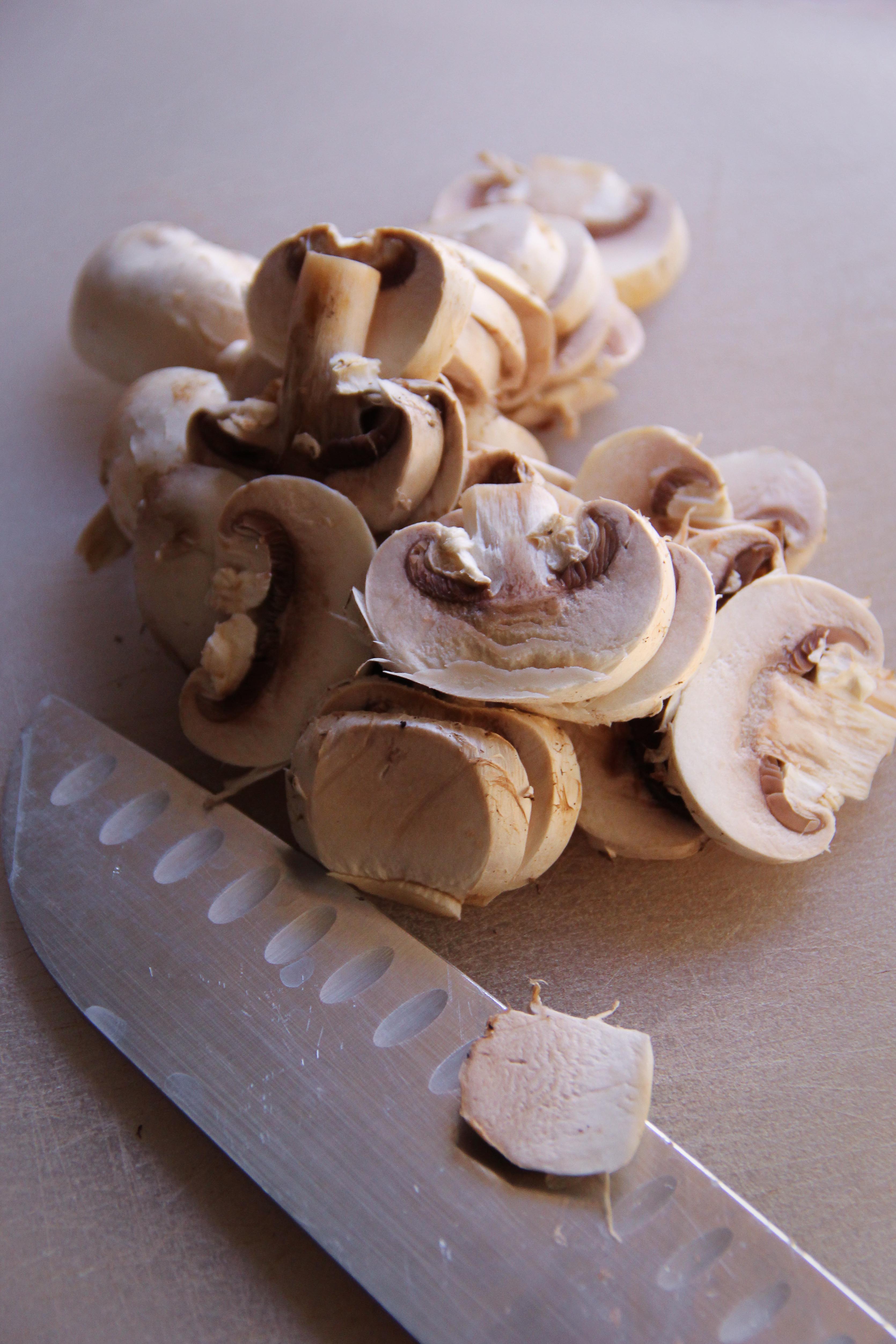 1 8.5 oz package of white button mushrooms – Pretty much all the packages of mushrooms at the store are 8.5 oz. To save time, you could buy the pre-sliced ones!
