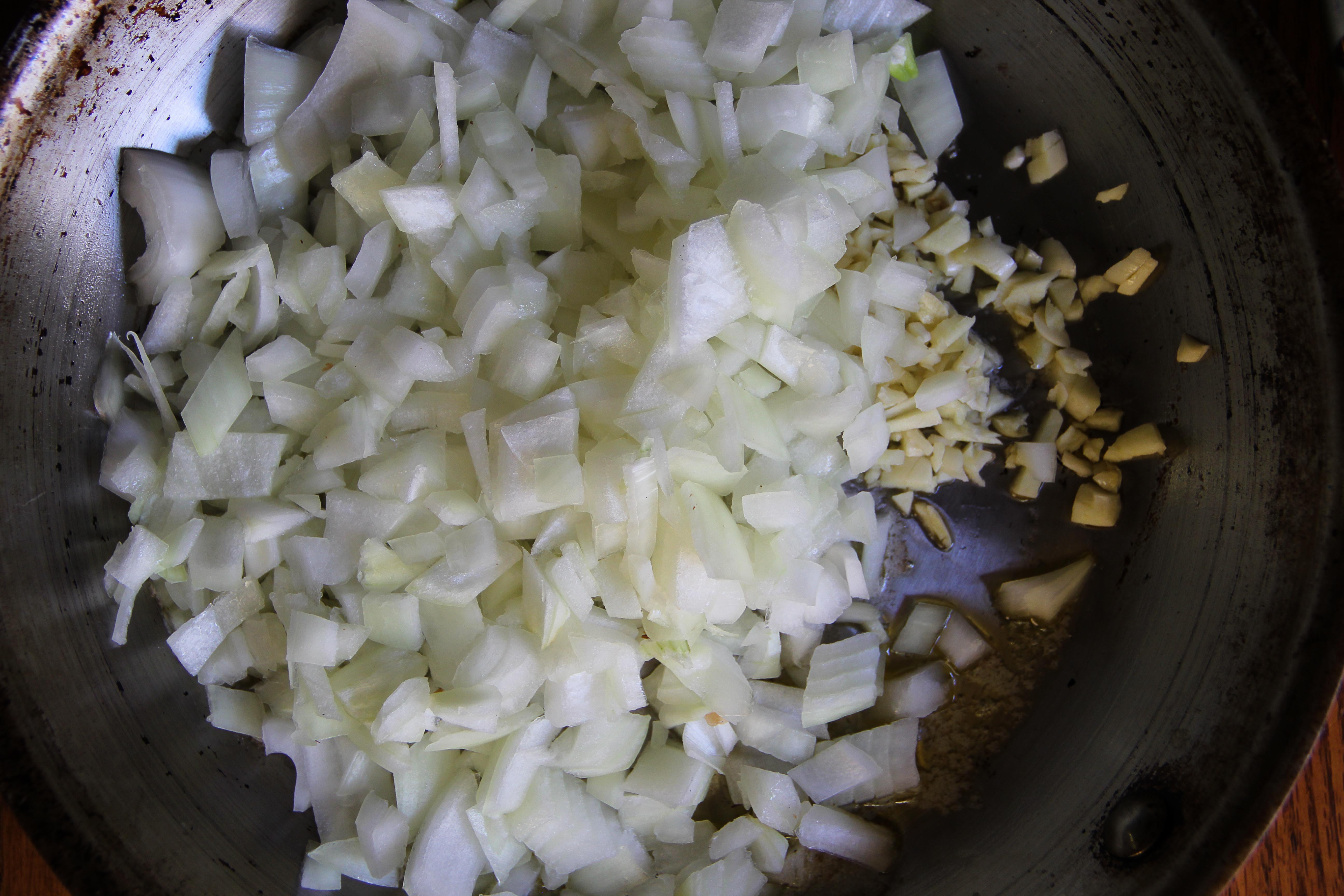 7. Cook the onions and garlic until they become somewhat translucent. This will take about 3-5 minutes. Stir them frequently so that they do not burn. This is what they will look like when you’re ready to move on to the next step.