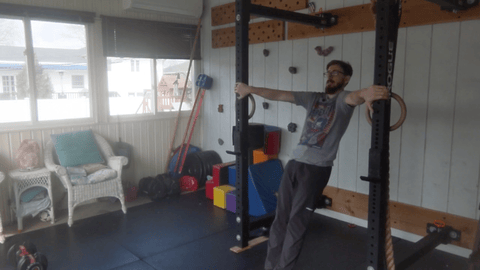 A useful variation if you don’t have anything laying around to use for rows. Do the pictured movement, but using a doorframe instead! (Make sure you don’t pinch your fingers.)