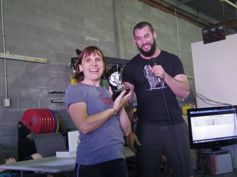 Attached are some photos of my 110kg deadlift, and here’s me with my shiny new trophy. All in my NF t-shirt! Shiggles from NF forum took the photos, and CruellaT’Kill from the forum also went in the competition, her first one ever, and she had a blast!