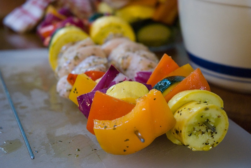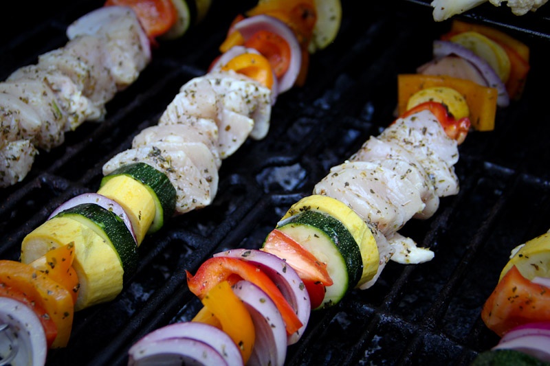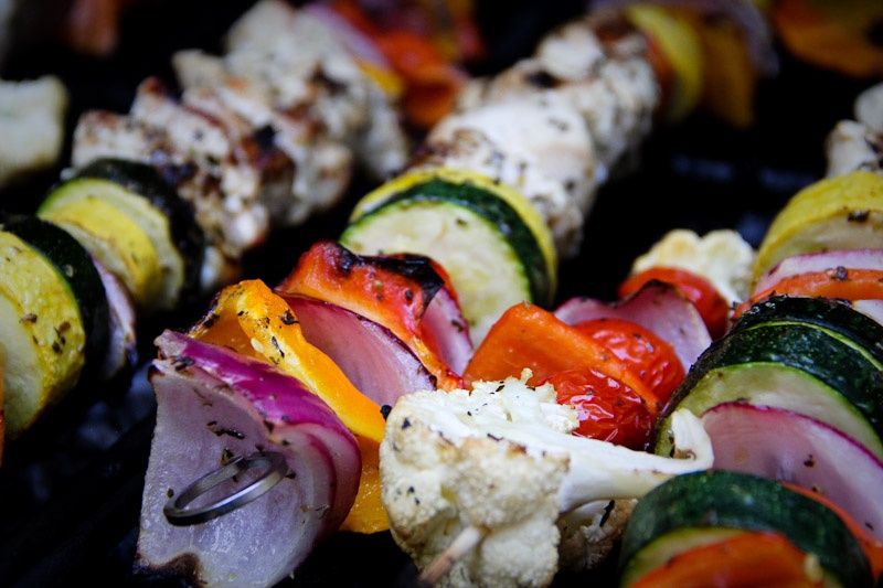 Take your favorite veggies, add some meat, toss in oil and spices, put it on a stick, and cook for 20 minutes. The best part is that your kitchen never heats up. (If you live in an apartment like I do, this is a major plus during the summer.)