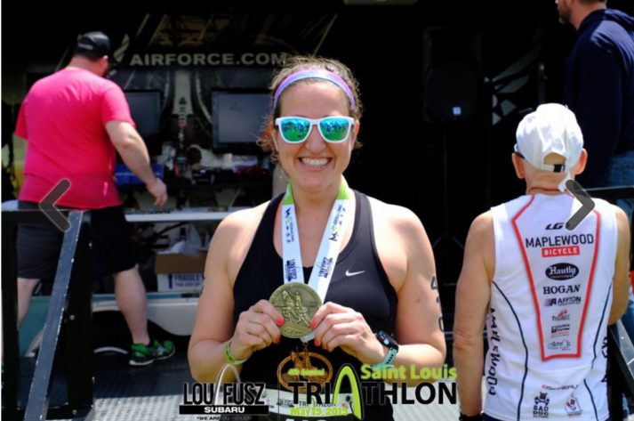 Right before that, she came in 1st place for her division in a sprint triathlon.