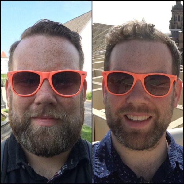 He lost weight – though I think maybe 1 of those pounds might be from trimming his beard! Ha 🙂