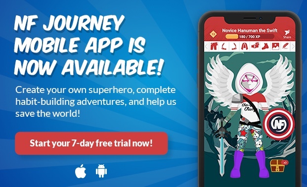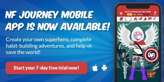 Option #1) If you want a daily prompt for doing home workouts, check out NF Journey. Our fun habit-building app helps you exercise more frequently, eat healthier, and level up your life (literally).