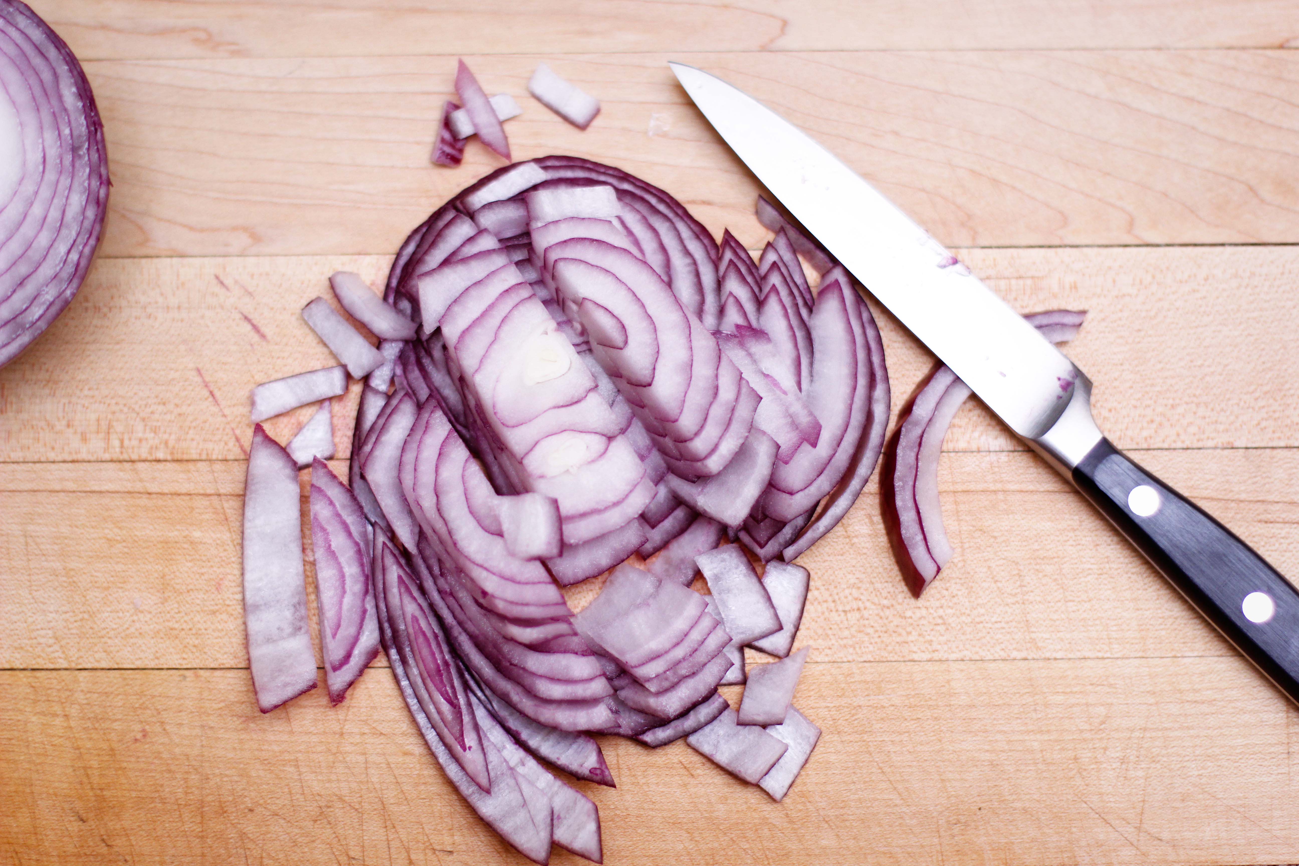 5. Slice your onions. For stir-frys, it doesn’t really matter how you slice them. Do what your heart tells you.