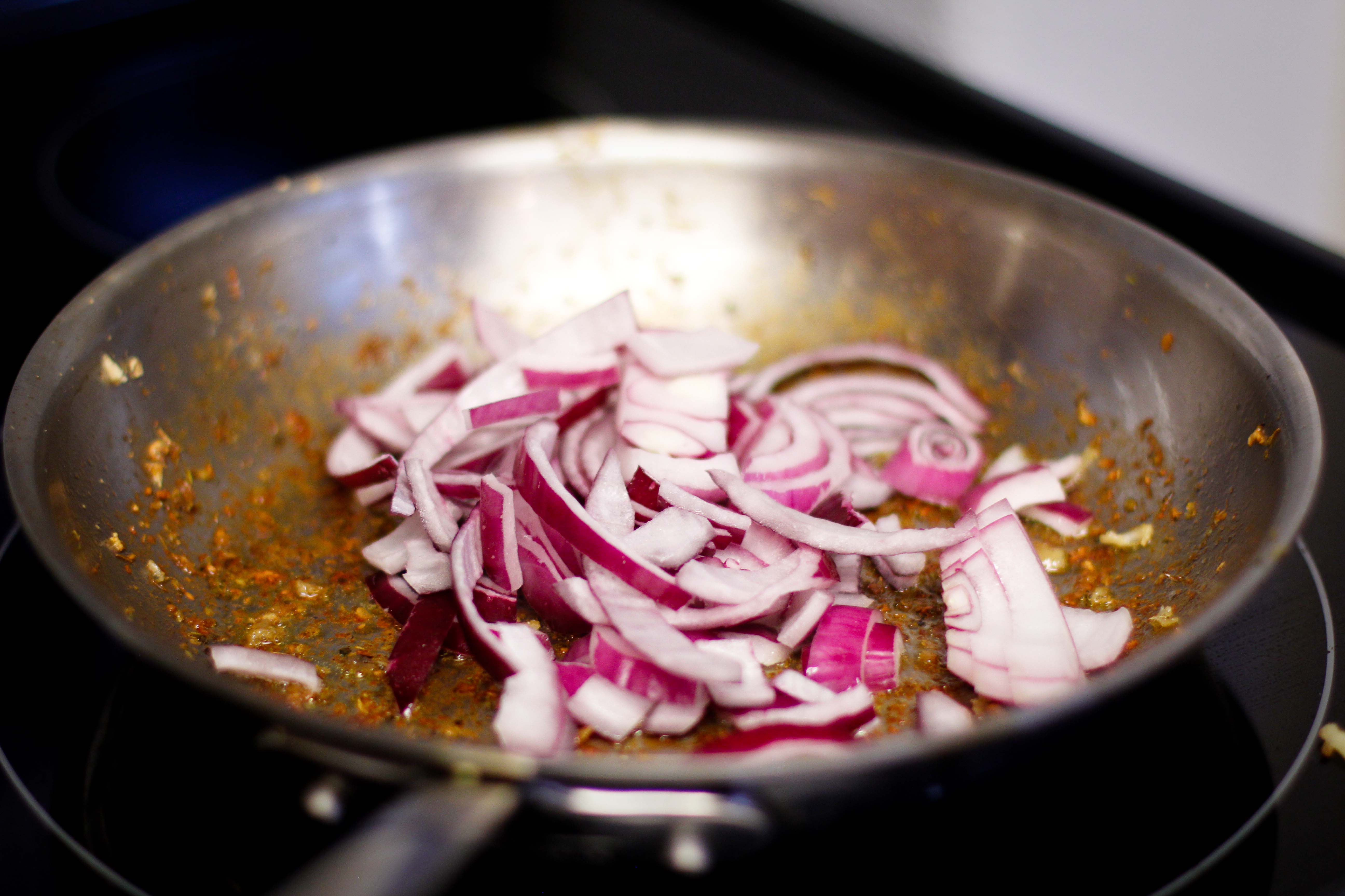 12. Let the onions cook for about 3-5 minutes, then toss in your kale (or whichever leafy green you chose).