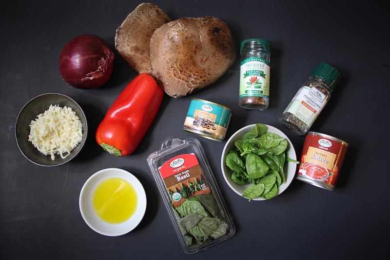 4 Portobello Mushrooms – These are the big ones. They come in packages or in bulk. The ones in the packages tend to get slimy and moldy more quickly than the bulk ones in my experience. So if you can, pick your own!
