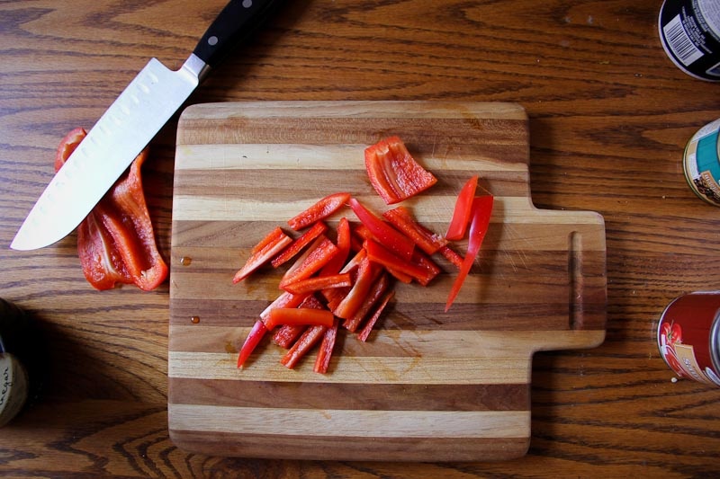 Cut your bell pepper into slices: