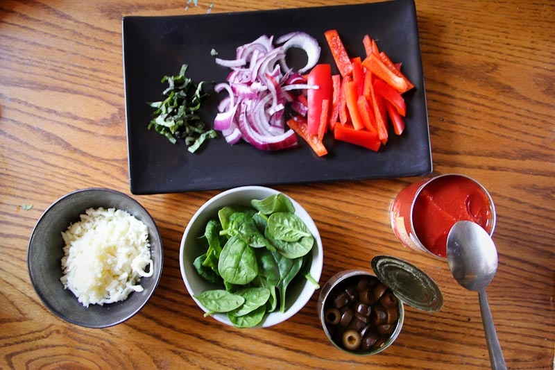 When making pizzas, it’s nice to have all the ingredients out and ready to use. I prepped mine like this: