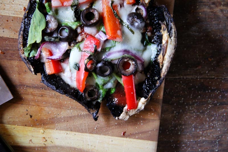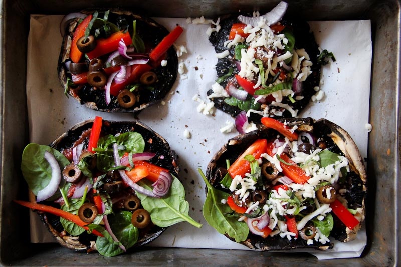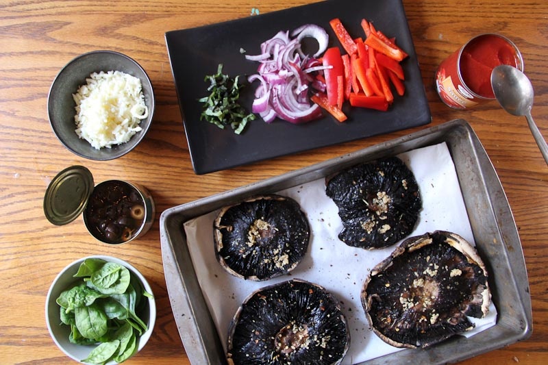 Chop some veggies, assemble them atop mushroom “crusts,” and pop them in the oven for 15 minutes or so. No sweat.