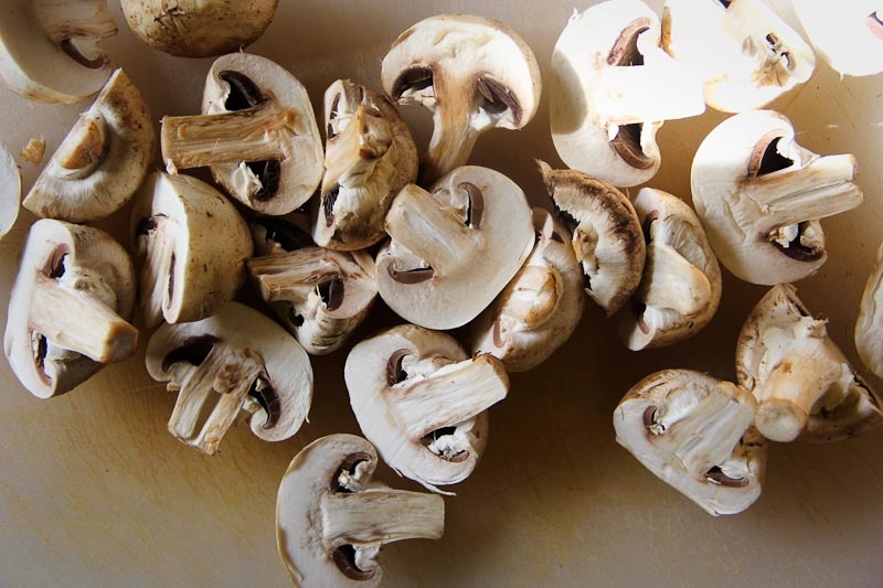 - Chop all of your mushrooms in half with the skill of a samurai.