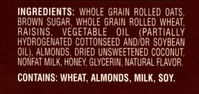 Let’s take another look at our Cliff Bar, but this time, looking at the Ingredients List: