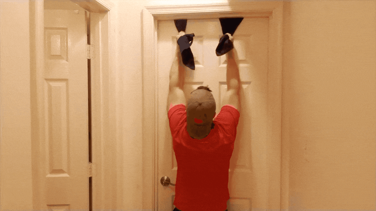 If you have a sturdy door and a couple of towels, you can use them as a chin-up alternative.
