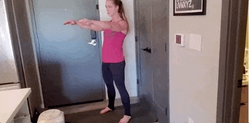 However, even if you can’t spread out for a plank, that’s okay. We can always use the small space itself for “equipment,” like with wall push-ups: