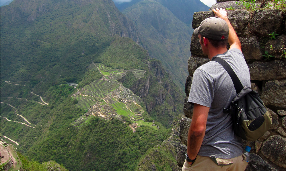 Overlooking Machu Picchu from the top of Huayna Picchu.