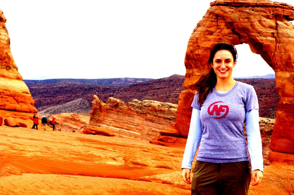 Lindsay M, in Delicate Arch, Utah. Fun fact of the day – that arch didn’t actually exist – Lindsay created it by running at supersonic speed through the rock (while in the NF shirt, obviously), Wile E. Coyote style. She then ate the Roadrunner for dinner.