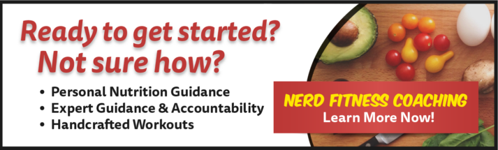 The other thing to consider would be our 1-on-1 Online Coaching Program. A Nerd Fitness Coach can create a custom-made workout plan to fit your life and situation!
