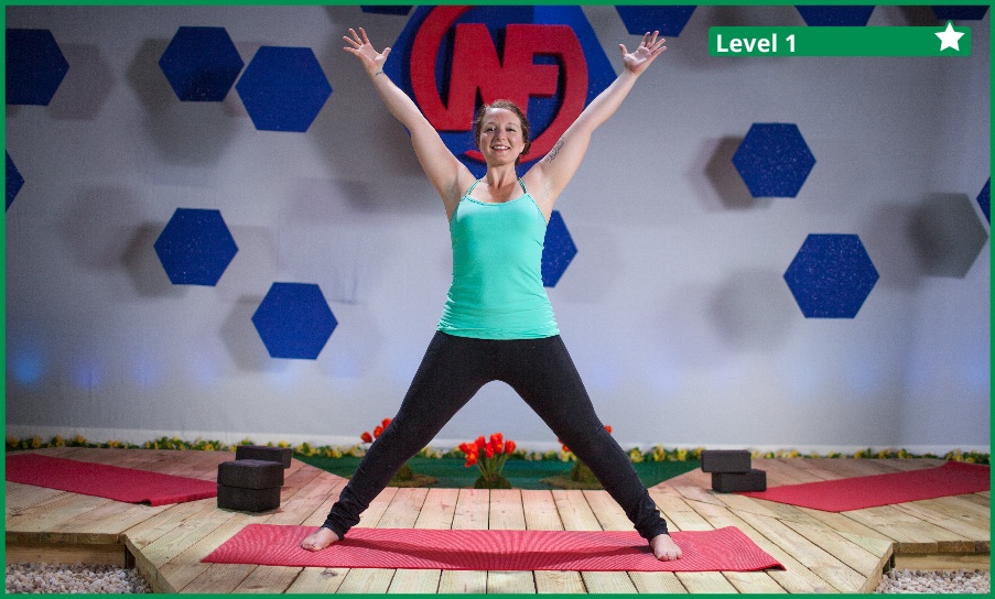 - Starting in what we call Star Pose, your feet will be a little wider than your hips and shoulders, but still comfortable in all areas. You arms will be straight out to your sides, parallel to the ground.